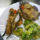 ご飯。ししゃもフライ。キャベツのおひたし。大根の煮物。豆腐のみそ汁。