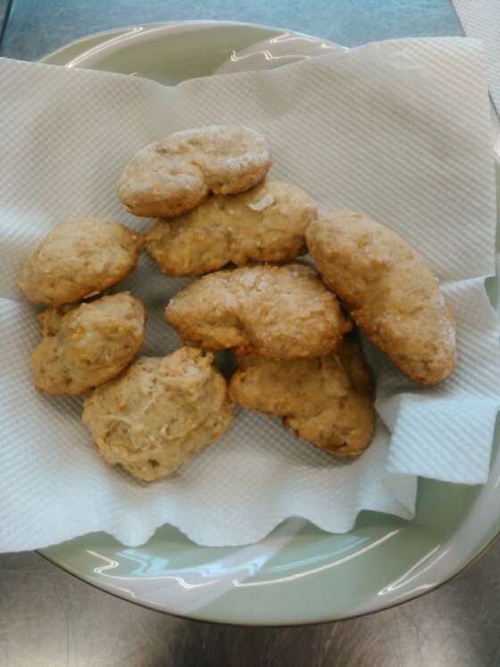 今日はきりんくみがクッキーを作りました。二種類作りました。これは米粉とバナナのクッキーです。おやつに食べました。