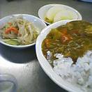 カレーライス。大根サラダ。りんご。今日は今年最後の食事なので、献立をカレーに変更しました。よく食べてくれました。