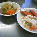 12月13日の献立。ご飯。ちくわのいそべあげ。切り干し大根の煮付け。ポテトサラダ。のっぺい汁。みんなよく食べてくれました。