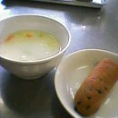 おやつ。チョコチップパン。白菜のミルクスープ。