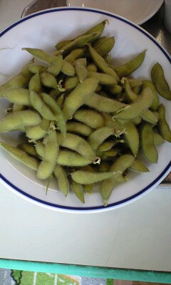 今日はきりん組とくま組で枝豆が収穫できました。おやつにみんなでたべました。
