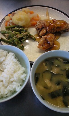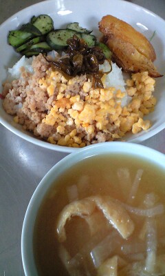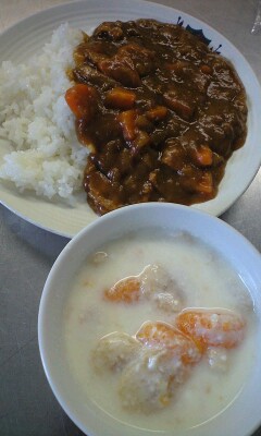 カレーライス(りす、きりん組はハヤシライス) ヨーグルト和え。今日はらいおん組がカレーを作りました。キャンプにむけての練習ですね〜 ぞうくみさんにご馳走してくれました。
